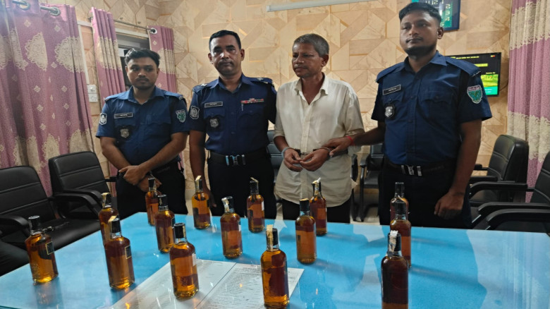 অভিযানকালে আফজাল সু স্টোরের সামনের পাকা রাস্তায় অবস্থানকালে এক ব্যক্তি পুলিশের উপস্থিতি টের পেয়ে হাতে থাকা সাদা প্লাস্টিকের ব্যাগ নিয়ে পালানোর চেষ্টা করে। পরে পুলিশ সদস্যরা ধাওয়া করে তাকে আটক করেন। এসময় তল্লাশি চালিয়ে তার বহন করা ব্যাগ থেকে ১৫ বোতল ভারতীয় এসি ব্ল্যাক মদ উদ্ধার করা হয়।