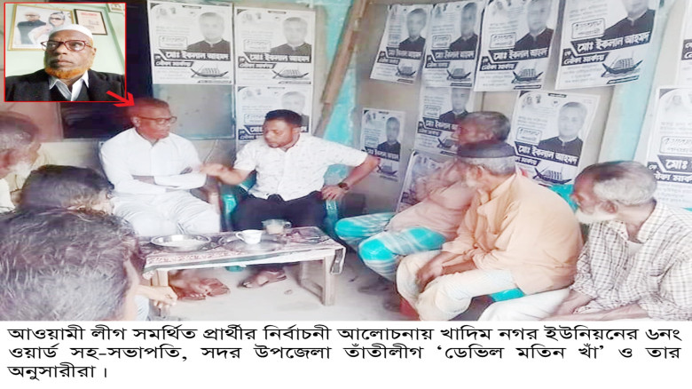 শহরতলীর খাদিম নগর ইউনিয়নের ৬নং ওয়ার্ড সহ-সভাপতি, সদর উপজেলা তাঁতীলীগ ‘ডেভিল মতিন খাঁ’ এখনো আইনশৃঙ্খলা বাহিনীর হাতে গ্রেপ্তার না হওয়ায় সাধারণ মানুষের মধ্যে উদ্বেগ ও আতঙ্ক বিরাজ করছে। স্থানীয়দের অভিযোগ, মতিন খাঁ-সহ তার ছেলে ও অনুসারীরা এলাকায় প্রভাব বজায় রেখে নানা ধরনের অপকর্ম ও ভীতি সৃষ্টিমূলক তৎপরতা চালিয়ে যাচ্ছে।