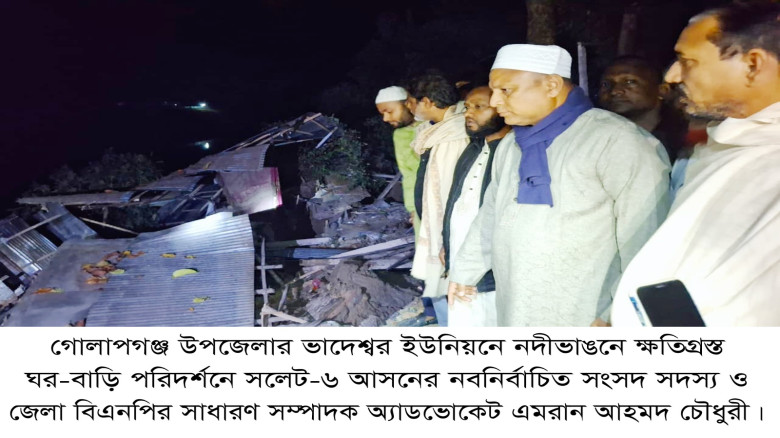 গোলাপগঞ্জ উপজেলার ভাদেশ্বর ইউনিয়নের মিরগঞ্জ বাজার এলাকায় কুশিয়ারা নদীপাড়ের ভাঙনে কয়েকটি বসতবাড়ি বিলীন হওয়ার ঘটনায় মধ্যরাতে সেখানে ছুটে গেলেন সিলেট-৬ আসনের নবনির্বাচিত সংসদ সদস্য ও জেলা বিএনপির সাধারণ সম্পাদক অ্যাডভোকেট এমরান আহমদ চৌধুরী।