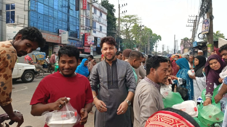 নিজস্ব প্রতিবেদকঃ সন্ধ্যা নামার আগেই সড়কের পাশে সারি বদ্ধ হয়ে দাড়িয়ে আছেন নানা বয়সী মানুষ। কেউ রিকশাচালক, কেউ দিনমজুর, কেউ ভিক্ষুক, কেউবা ছিন্নমূল মানুষ। একটি পেকেটে ডিম–আখনি, খেজুর, জিলাপি, পেয়াজো, আলুচপ, চানা ও এক বোতল পানি দিয়ে যাচ্ছে তারা।