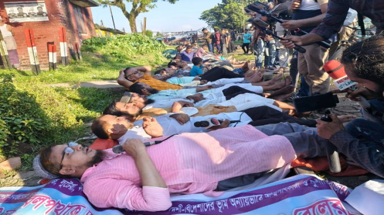 সিলেট-ঢাকা রেলপথকে ডাবল করা, নতুন ট্রেন চালু এবং রেলসেবার মান উন্নয়নের দাবিতে প্রতীকী “রেললাইনে ১০ মিনিট শোয়া” কর্মসূচি পালন করেছেন বিভিন্ন নাগরিক সংগঠনের সদস্যরা।