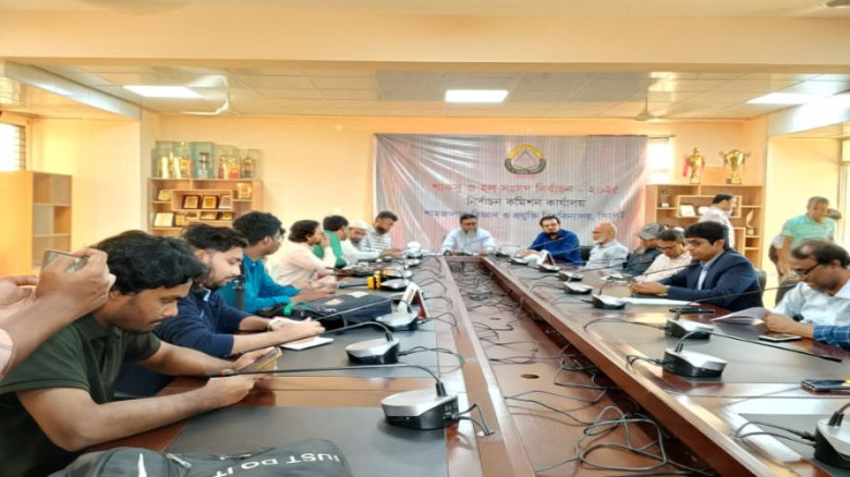 আজ রোববার (১৬ নভেম্বর) বিকাল সাড়ে চারটায় বিশ্ববিদ্যালয়ের আই আই সিটি ভবনে শাকসু নির্বাচন কার্যালয়ে তফসিল ঘোষণা করেন প্রধান নির্বাচন কমিশনার অধ্যাপক ড. আবুল মুকিত মোহাম্মদ মোকাদ্দেস। এসময় উপস্থিত ছিলেন অন্যান্য নির্বাচন কমিশনার।নির্বাচনী তফসিল অনুযায়ী– ২০ নভেম্বর দুপুর সাড়ে ৩টা পর্যন্ত খসড়া ভোটার তালিকা প্রকাশ হবে। ২২ নভেম্বর খসড়া ভোটার তালিকার আপত্তি গ্রহণ করা হবে। চূড়ান্ত ভোটার তালিকা প্রকাশ করা হবে ২৩ নভেম্বর।